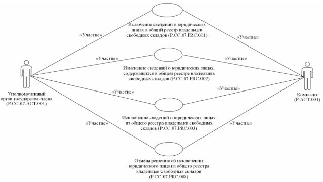 Рис. 3. Общая схема группы процедур представления уполномоченным органам государств-членов сведений о юридических лицах, содержащихся в общем реестре владельцев свободных складов