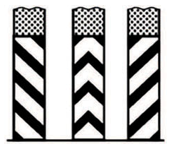"6.3.2. Разметку 2.1.1 - 2.1.3 применяют для обозначения вертикальных элементов мостовых сооружений, опор освещения, деревьев, фронтальных ограждений и терминалов по ГОСТ 33127, тумб закрытого типа (демпфирующих) по ГОСТ 32759 или дорожных буферов и подобных препятствий, расположенных в пределах разделительной полосы или обочины и на расстоянии менее 1 м от нее, при отсутствии обочины - менее 1 м от края проезжей части, а также в других случаях, когда эти препятствия представляют опасность для движущихся транспортных средств".