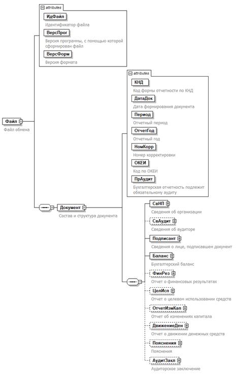 XML-схема файла обмена приводится отдельным файлом и размещается на сайте Федеральной налоговой службы.
