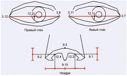 Таким образом, погрешность определения параметров составляет 1%, за исключением параметра "расстояние между центрами глаз", которое может иметь немного большее значение, чем в действительности.