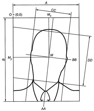 - отношении горизонтального размера головы к горизонтальному размеру изображения;