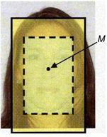 Среднее значение (1 - My/B) положения лица по вертикали (положения глаз по вертикали, т.е. горизонтальной линии, проходящей через центры глаз) для 7 128 изображений составляет 56% вертикального размера изображения. Это соответствует значению координаты Y точки M (My), равному 44% вертикального размера изображения.