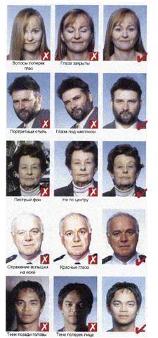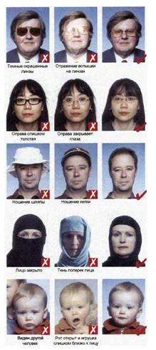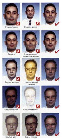 b) Примеры изображений лица, зарегистрированных в фотокабине, приведены в таблице C.10.
