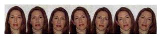 Рисунок D.9 - Примеры изображений с отклонением головы; углы отклонения равны 0°, +5°, -5°, +10°, -10°, +15°, -15° (слева направо)