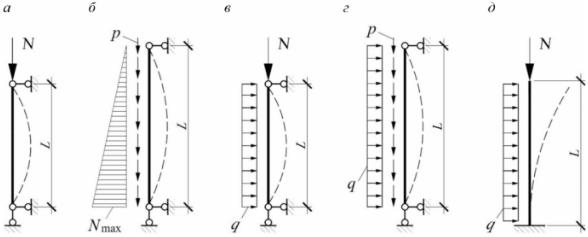 Для некоторых схем закрепления концов и вида нагрузки значения приведены в таблице 6.1.
