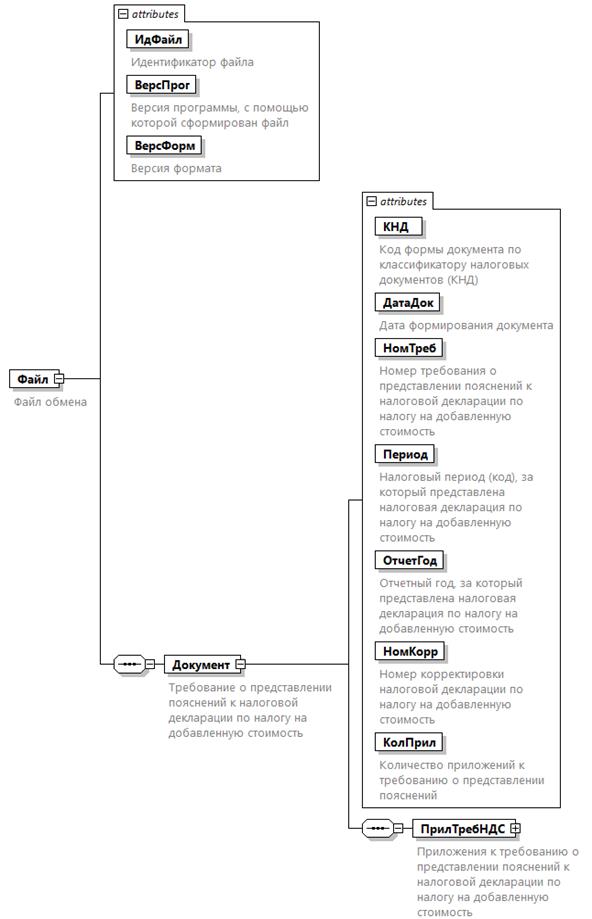 1. Настоящий формат описывает требования к XML-файлам (далее - файл обмена) передачи в электронной форме налоговыми органами налогоплательщику требования о представлении пояснений к налоговой декларации по налогу на добавленную стоимость.