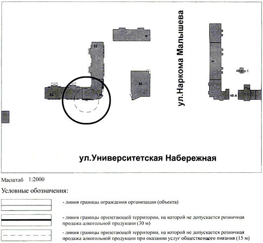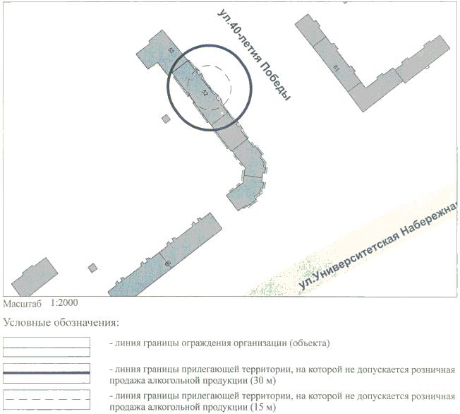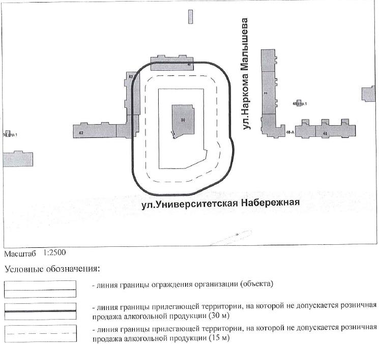 СХЕМА ГРАНИЦ ТЕРРИТОРИИ, НА КОТОРОЙ НЕ ДОПУСКАЕТСЯ РОЗНИЧНАЯ ПРОДАЖА АЛКОГОЛЬНОЙ ПРОДУКЦИИ, ПРИЛЕГАЮЩЕЙ К ООО "СТОМАТОЛОГИЧЕСКАЯ ПРАКТИКА" ПО АДРЕСУ: Г. ЧЕЛЯБИНСК, КАЛИНИНСКИЙ РАЙОН, УЛ. УНИВЕРСИТЕТСКАЯ НАБЕРЕЖНАЯ, 52, ПОМ. 2.