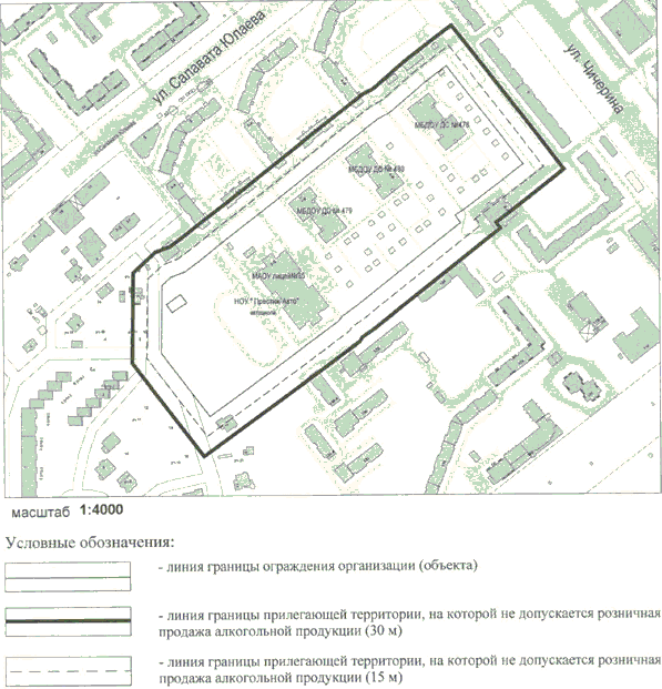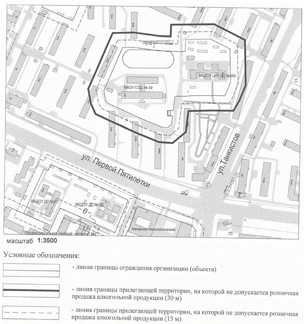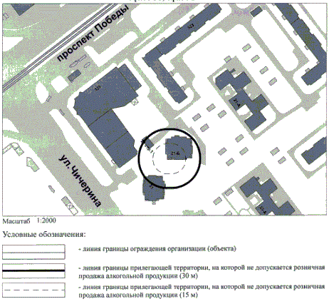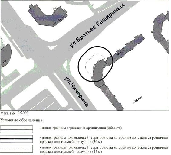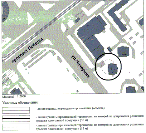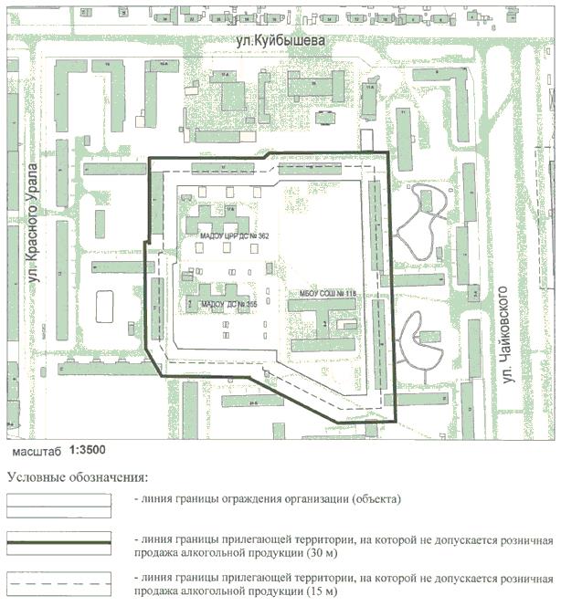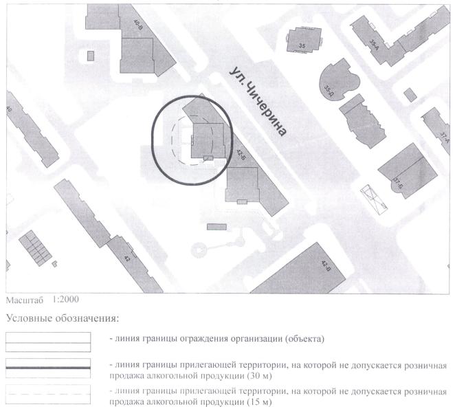 СХЕМА ГРАНИЦ ТЕРРИТОРИИ, НА КОТОРОЙ НЕ ДОПУСКАЕТСЯ РОЗНИЧНАЯ ПРОДАЖА АЛКОГОЛЬНОЙ ПРОДУКЦИИ, ПРИЛЕГАЮЩЕЙ К ЧОУДО "АНГЛИЙСКИЙ КЛУБ-ЮКЕЙ" ПО АДРЕСУ: Г. ЧЕЛЯБИНСК, КАЛИНИНСКИЙ РАЙОН, УЛ. ЧИЧЕРИНА, 35-А.