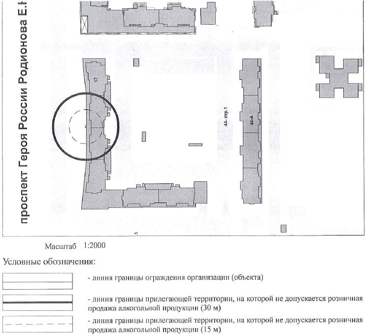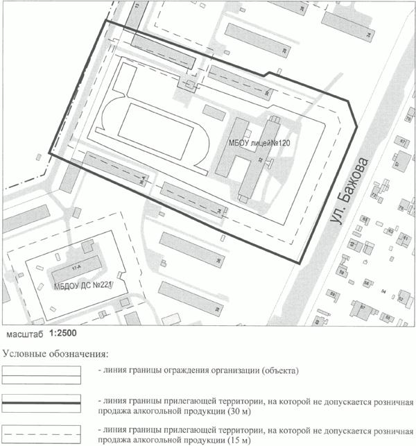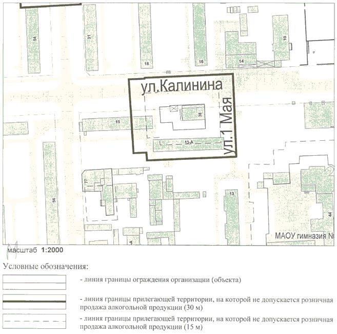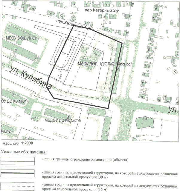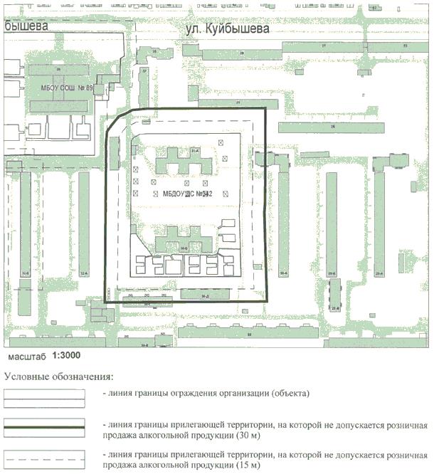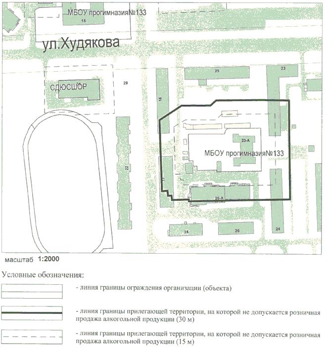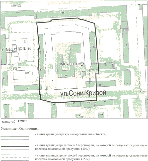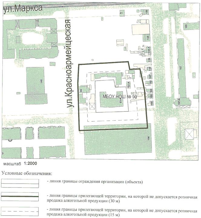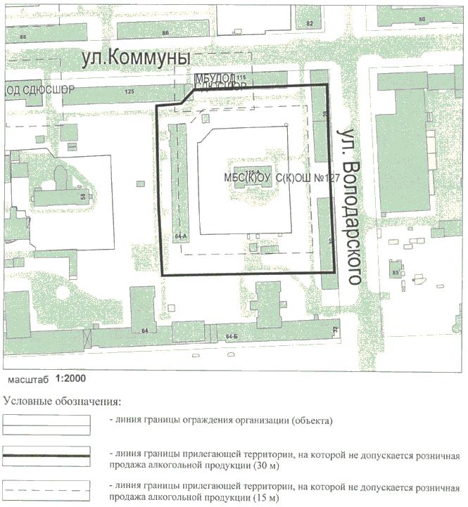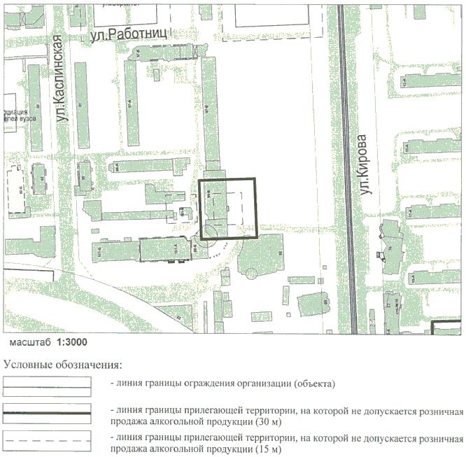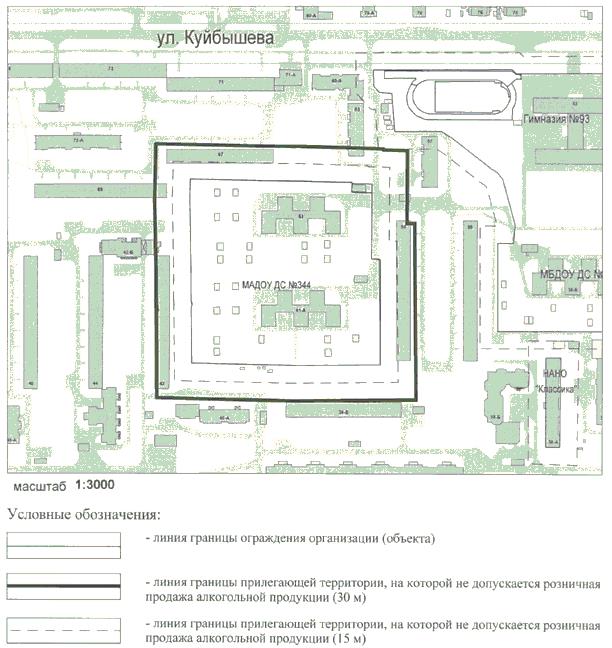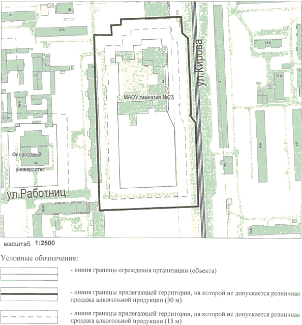 СХЕМА ГРАНИЦ ТЕРРИТОРИИ, НА КОТОРОЙ НЕ ДОПУСКАЕТСЯ РОЗНИЧНАЯ ПРОДАЖА АЛКОГОЛЬНОЙ ПРОДУКЦИИ, ПРИЛЕГАЮЩЕЙ К МАОУ ГИМНАЗИЯ N 23, АВТОШКОЛА ПО АДРЕСУ: КАЛИНИНСКИЙ РАЙОН УЛ. КИРОВА,44.