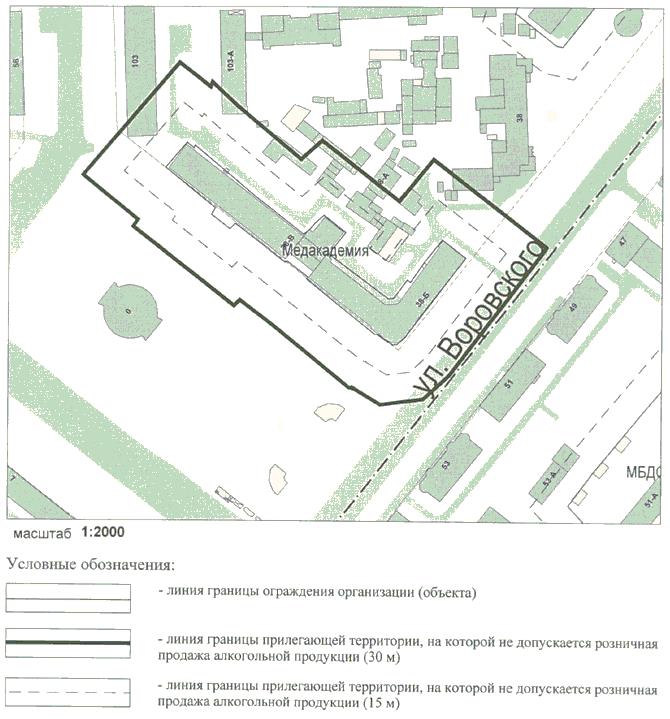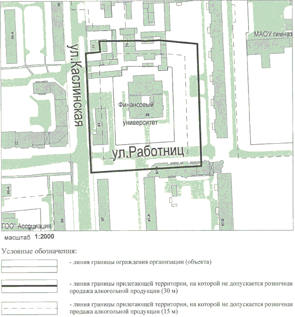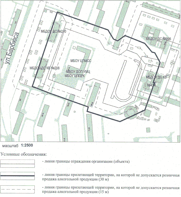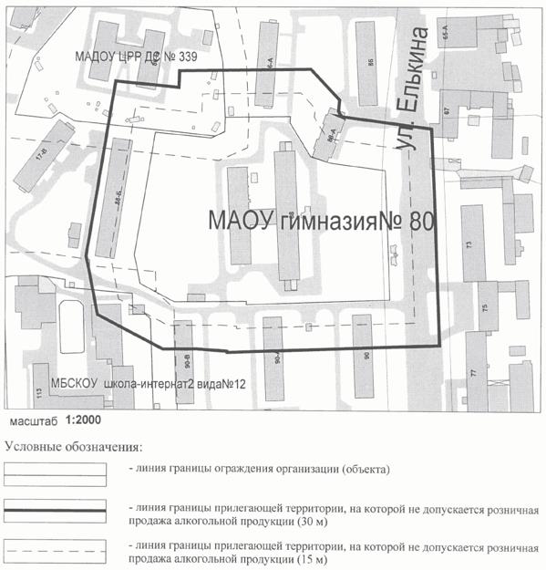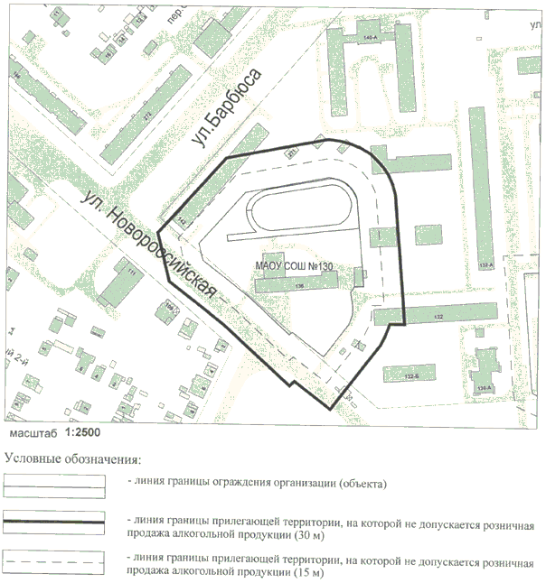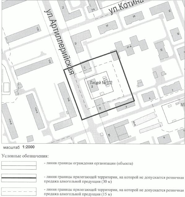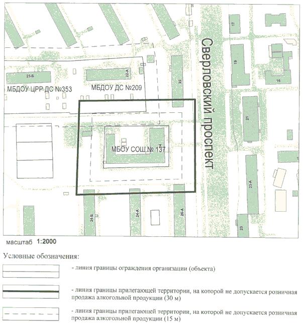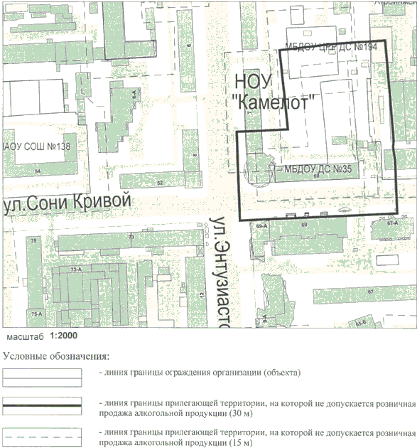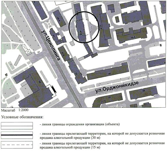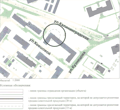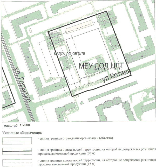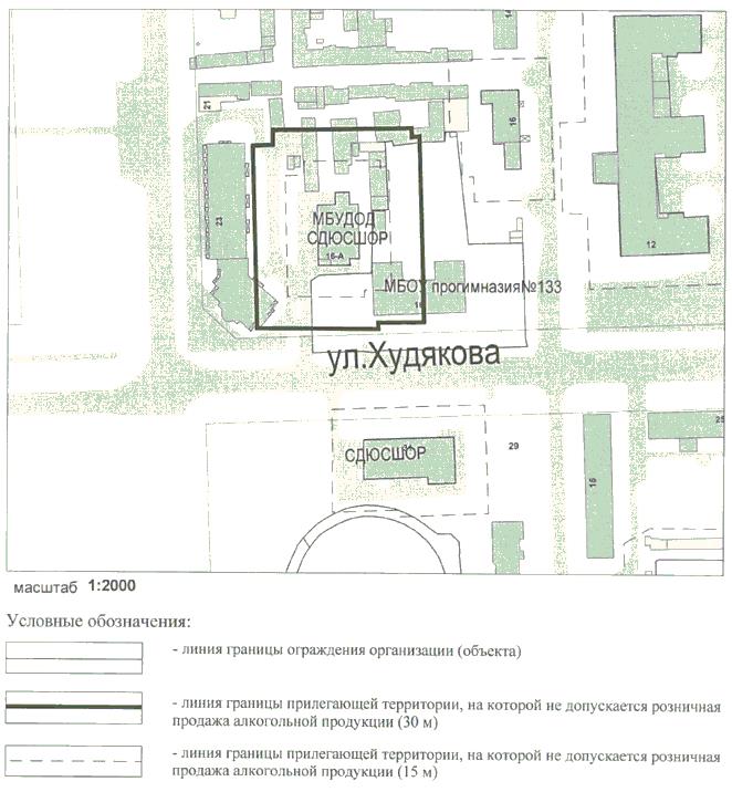 СХЕМА ГРАНИЦ ТЕРРИТОРИИ, НА КОТОРОЙ НЕ ДОПУСКАЕТСЯ РОЗНИЧНАЯ ПРОДАЖА АЛКОГОЛЬНОЙ ПРОДУКЦИИ, ПРИЛЕГАЮЩЕЙ К МАОУ ГИМНАЗИЯ N 23, АВТОШКОЛА ПО АДРЕСУ: КАЛИНИНСКИЙ РАЙОН УЛ. КИРОВА,44.