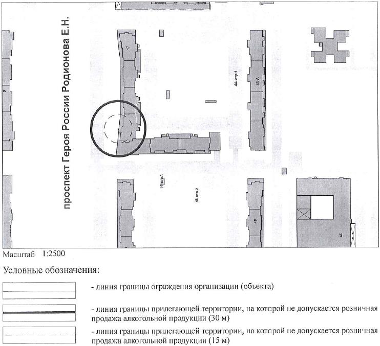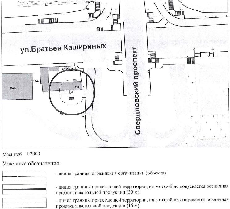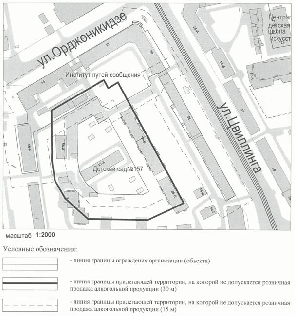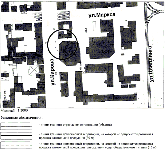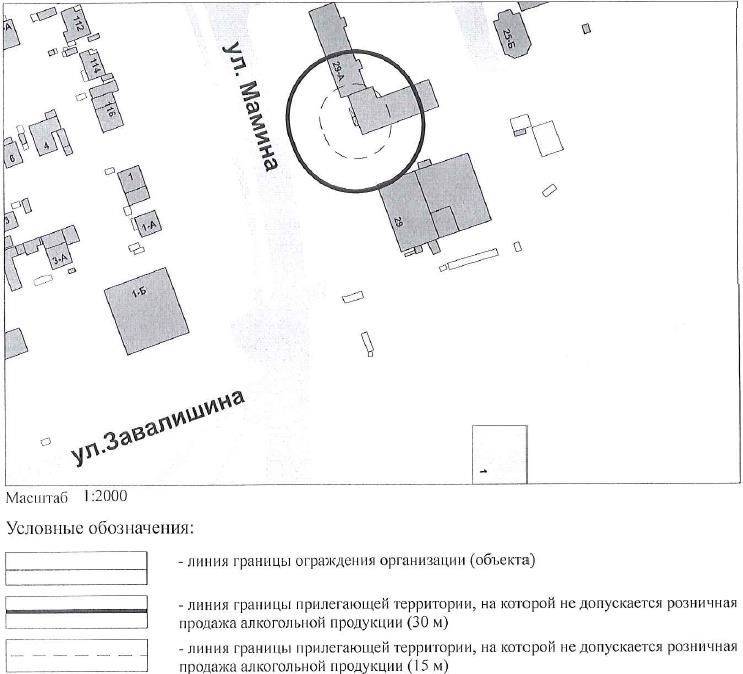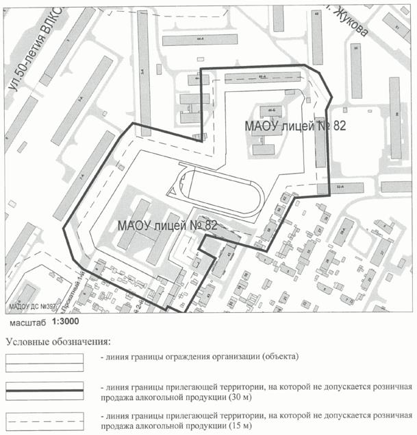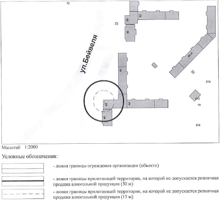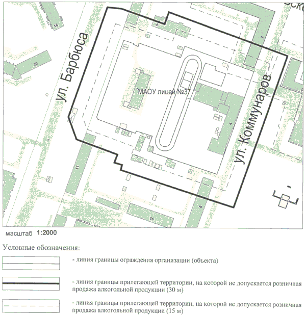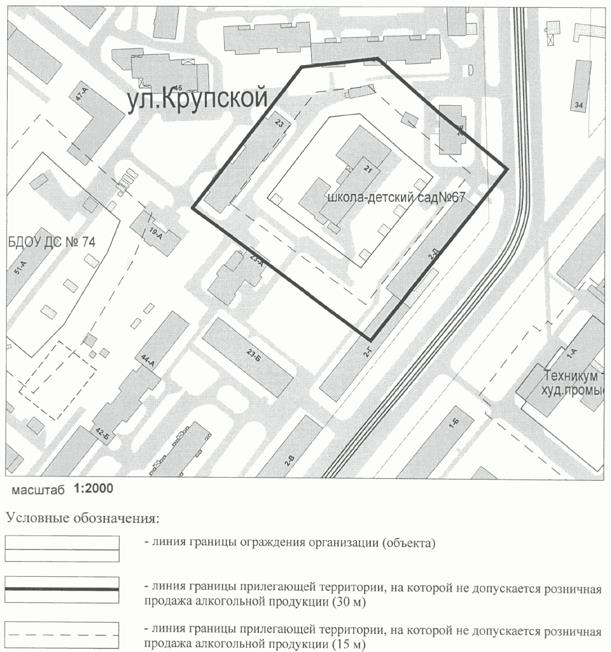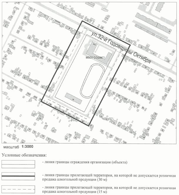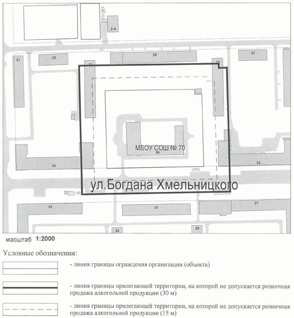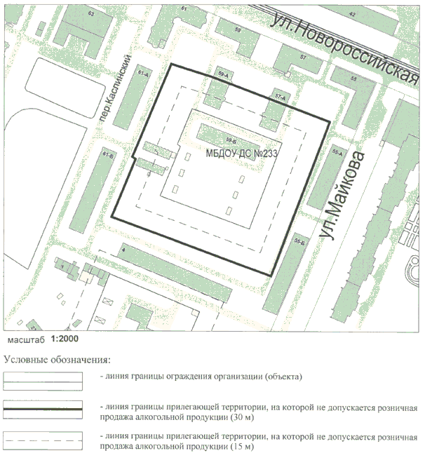 СХЕМА ГРАНИЦ ТЕРРИТОРИИ, НА КОТОРОЙ НЕ ДОПУСКАЕТСЯ РОЗНИЧНАЯ ПРОДАЖА АЛКОГОЛЬНОЙ ПРОДУКЦИИ, ПРИЛЕГАЮЩЕЙ К МАОУ ГИМНАЗИЯ N 23, АВТОШКОЛА ПО АДРЕСУ: КАЛИНИНСКИЙ РАЙОН УЛ. КИРОВА,44.