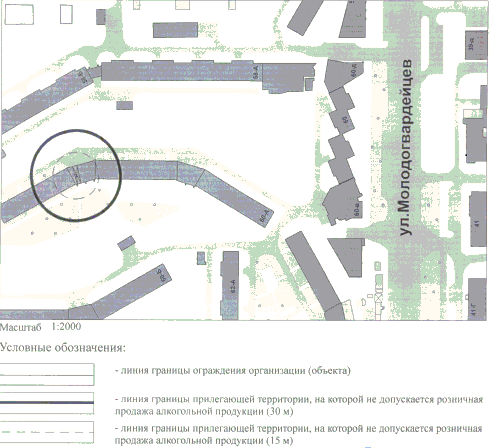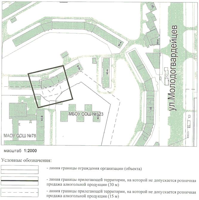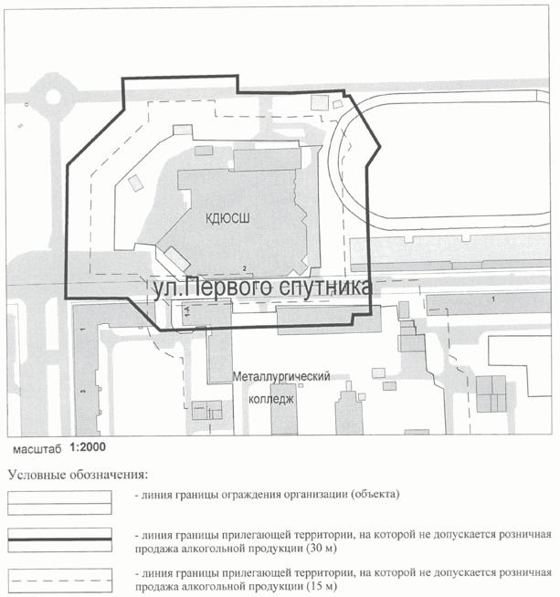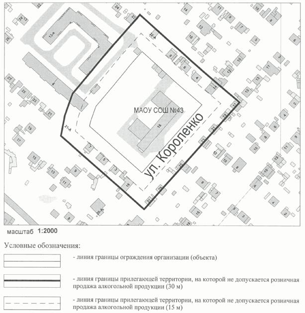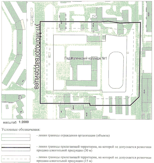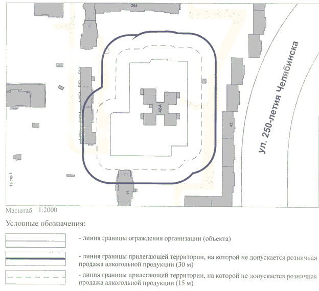 СХЕМА ГРАНИЦ ТЕРРИТОРИИ, НА КОТОРОЙ НЕ ДОПУСКАЕТСЯ РОЗНИЧНАЯ ПРОДАЖА АЛКОГОЛЬНОЙ ПРОДУКЦИИ, ПРИЛЕГАЮЩЕЙ К ЧЕЛЯБИНСКИЙ ПЕДАГОГИЧЕСКИЙ КОЛЛЕДЖ N 1 ПО АДРЕСУ: КАЛИНИНСКИЙ РАЙОН, УЛ. МОЛОДОГВАРДЕЙЦЕВ, 43
