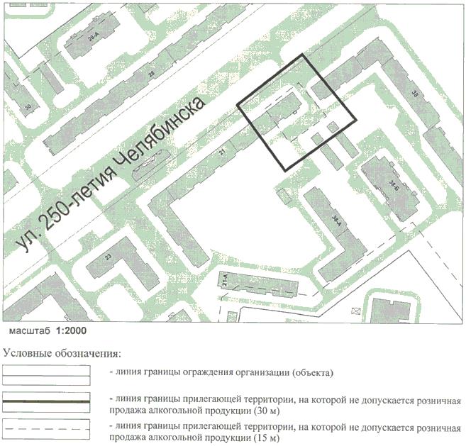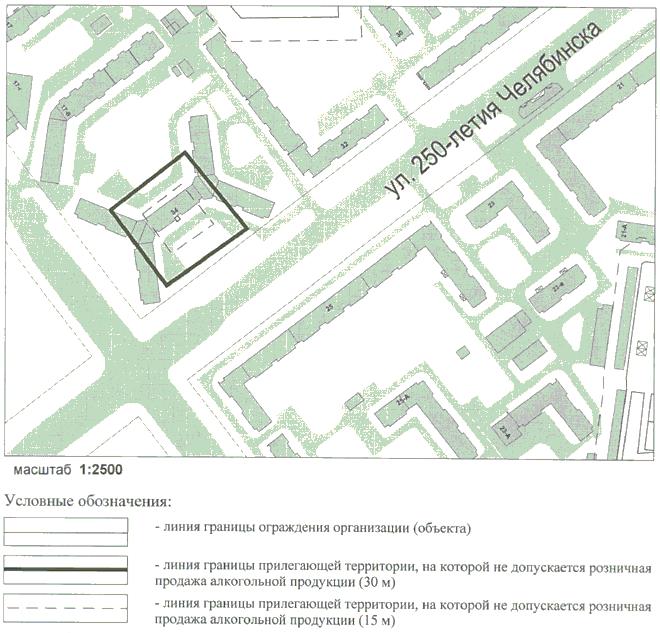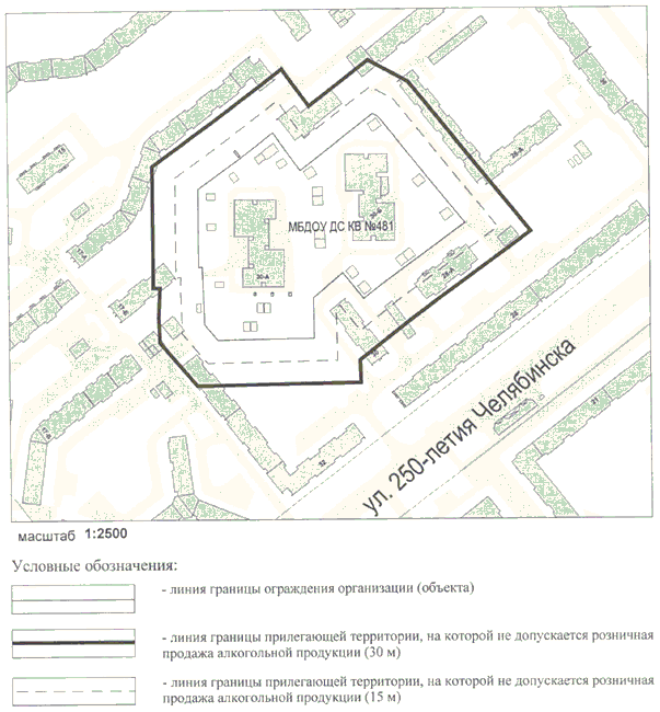 СХЕМА ГРАНИЦ ТЕРРИТОРИИ, НА КОТОРОЙ НЕ ДОПУСКАЕТСЯ РОЗНИЧНАЯ ПРОДАЖА АЛКОГОЛЬНОЙ ПРОДУКЦИИ, ПРИЛЕГАЮЩЕЙ К МБДОУ ДСКВ N 481 ПО АДРЕСУ: Г. ЧЕЛЯБИНСК, КАЛИНИНСКИЙ РАЙОН, УЛ. 250-ЛЕТИЯ ЧЕЛЯБИНСКА, 30-А, 30-Б