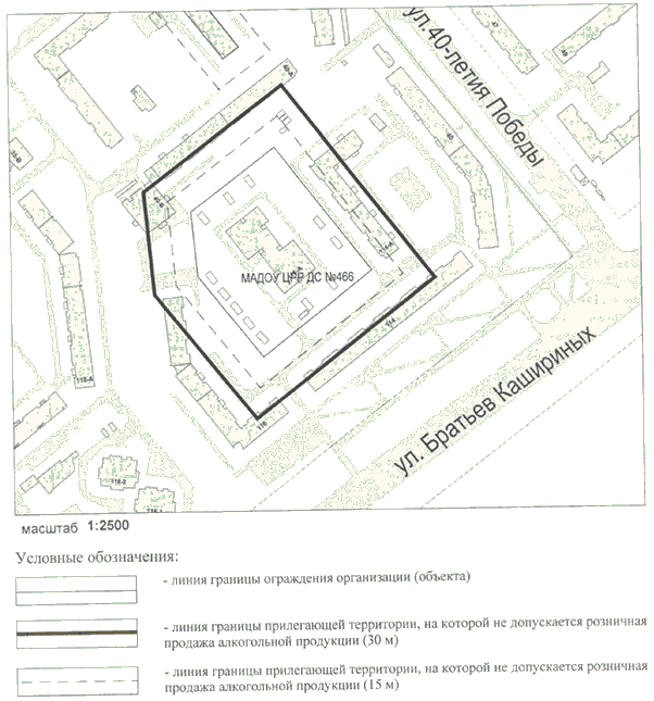 СХЕМА ГРАНИЦ ТЕРРИТОРИИ, НА КОТОРОЙ НЕ ДОПУСКАЕТСЯ РОЗНИЧНАЯ ПРОДАЖА АЛКОГОЛЬНОЙ ПРОДУКЦИИ, ПРИЛЕГАЮЩЕЙ К МАДОУ ЦРР ДС N 466 ПО АДРЕСУ: Г. ЧЕЛЯБИНСК, КАЛИНИНСКИЙ РАЙОН, УЛ. БРАТЬЕВ КАШИРИНЫХ, 116-А