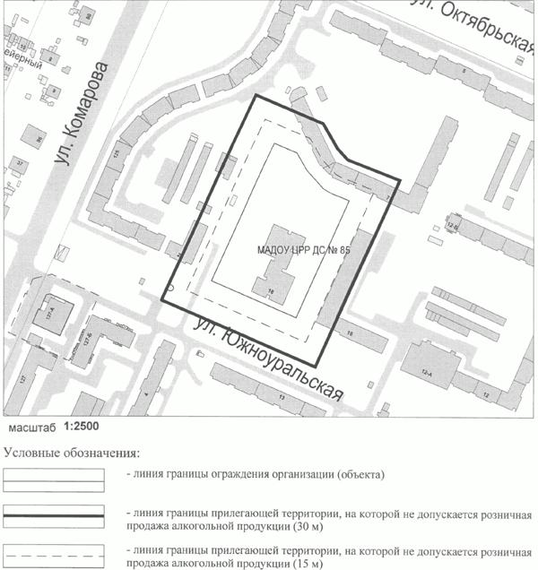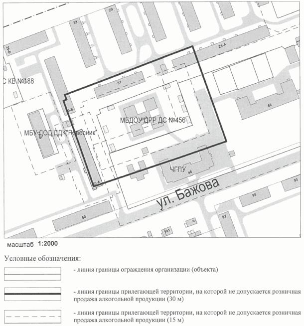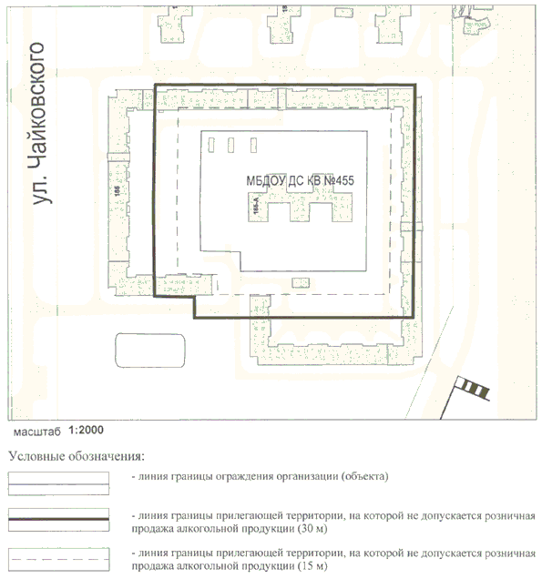 СХЕМА ГРАНИЦ ТЕРРИТОРИИ, НА КОТОРОЙ НЕ ДОПУСКАЕТСЯ РОЗНИЧНАЯ ПРОДАЖА АЛКОГОЛЬНОЙ ПРОДУКЦИИ, ПРИЛЕГАЮЩЕЙ К МБДОУ ДС КВ N 455 ПО АДРЕСУ: Г. ЧЕЛЯБИНСК, КАЛИНИНСКИЙ РАЙОН, УЛ. ЧАЙКОВСКОГО 185А