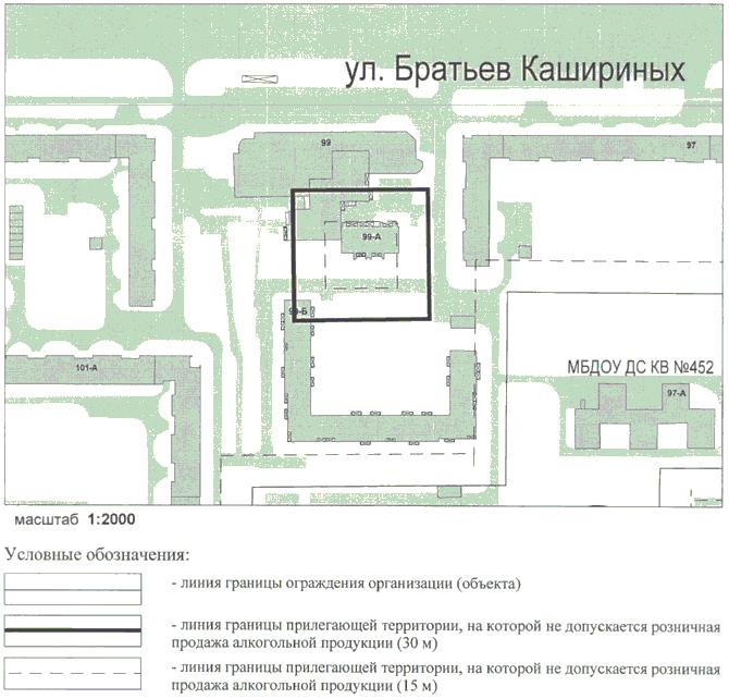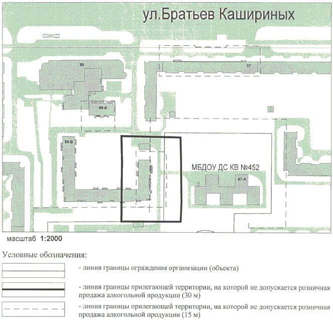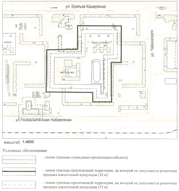 СХЕМА ГРАНИЦ ТЕРРИТОРИИ, НА КОТОРОЙ НЕ ДОПУСКАЕТСЯ РОЗНИЧНАЯ ПРОДАЖА АЛКОГОЛЬНОЙ ПРОДУКЦИИ, ПРИЛЕГАЮЩЕЙ К МБДОУ ДС КВ N 452, МАОУ СОШ N 25 АВТОШКОЛА ПО АДРЕСУ: Г. ЧЕЛЯБИНСК, КАЛИНИНСКИЙ РАЙОН, УЛ. БРАТЬЕВ КАШИРИНЫХ, 97-А, УЛ. УНИВЕРСИТЕТСКАЯ НАБЕРЕЖНАЯ 30-А