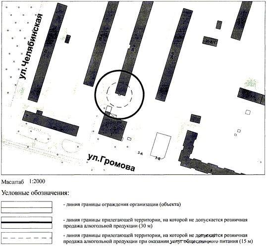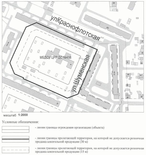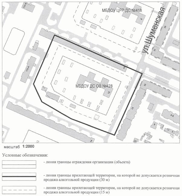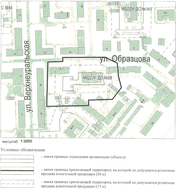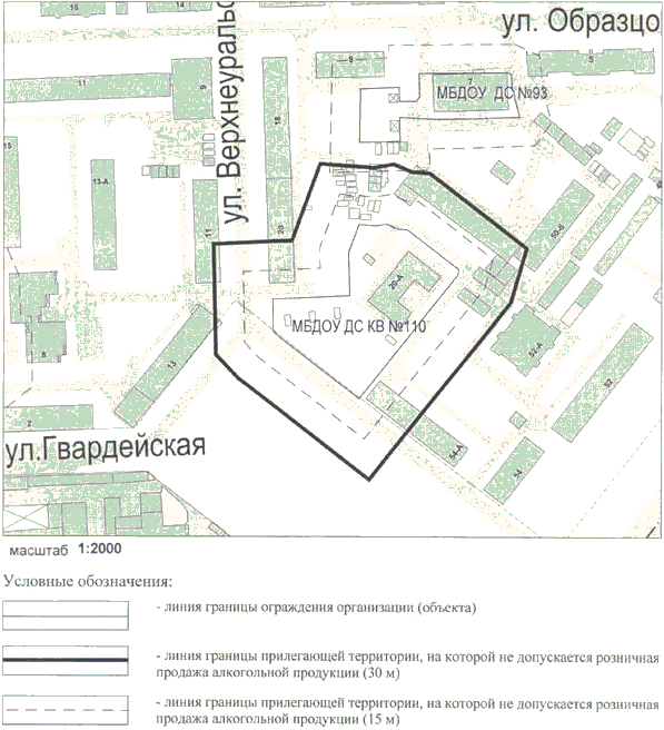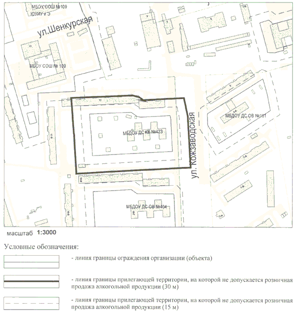 СХЕМА ГРАНИЦ ТЕРРИТОРИИ, НА КОТОРОЙ НЕ ДОПУСКАЕТСЯ РОЗНИЧНАЯ ПРОДАЖА АЛКОГОЛЬНОЙ ПРОДУКЦИИ, ПРИЛЕГАЮЩЕЙ К МБДОУ ДС КВ N 423 ПО АДРЕСУ: Г. ЧЕЛЯБИНСК, КАЛИНИНСКИЙ РАЙОН, УЛ. ШЕНКУРСКАЯ, 11-А