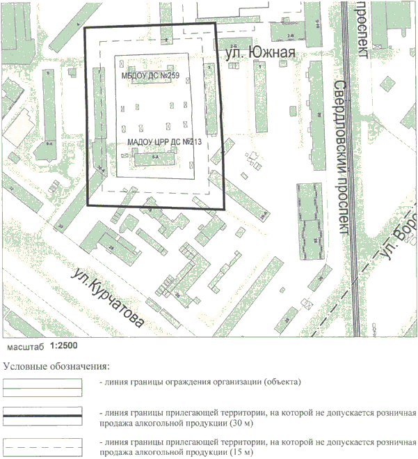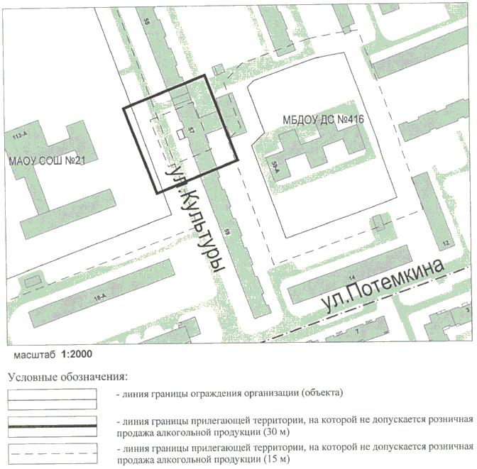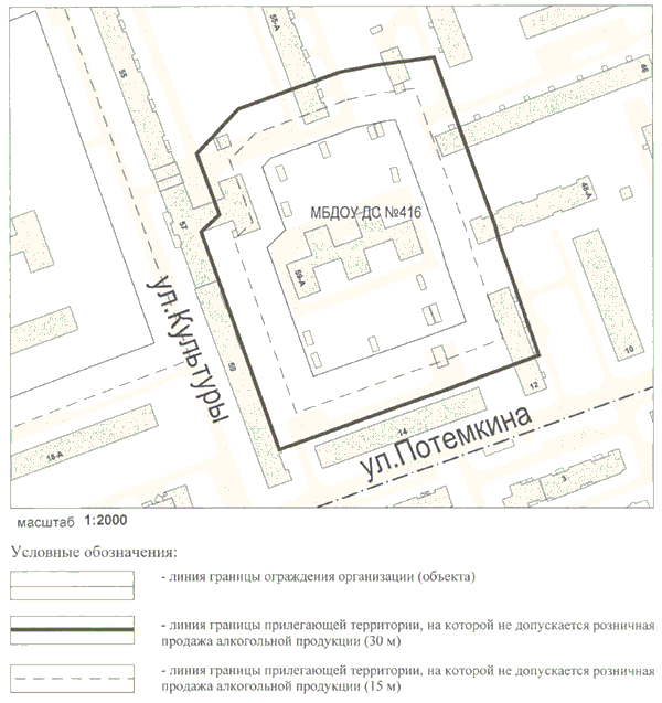 СХЕМА ГРАНИЦ ТЕРРИТОРИИ, НА КОТОРОЙ НЕ ДОПУСКАЕТСЯ РОЗНИЧНАЯ ПРОДАЖА АЛКОГОЛЬНОЙ ПРОДУКЦИИ, ПРИЛЕГАЮЩЕЙ К МБДОУ ДС N 416 ПО АДРЕСУ: Г. ЧЕЛЯБИНСК, КАЛИНИНСКИЙ РАЙОН, УЛ. КУЛЬТУРЫ, 59-А