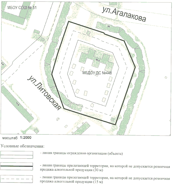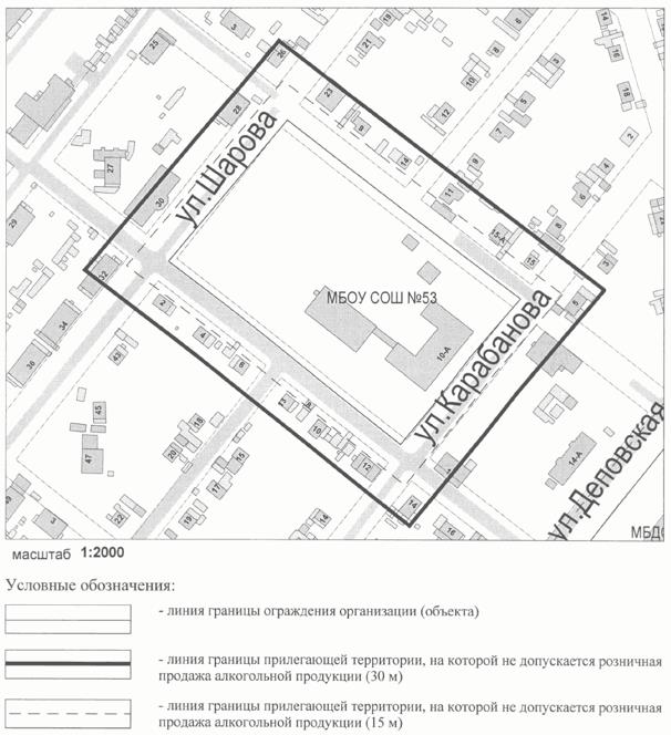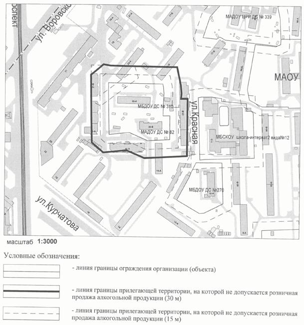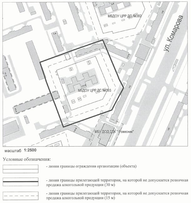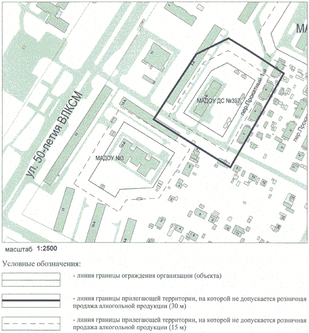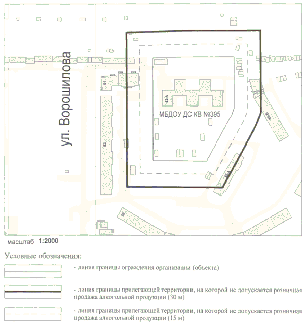 СХЕМА ГРАНИЦ ТЕРРИТОРИИ, НА КОТОРОЙ НЕ ДОПУСКАЕТСЯ РОЗНИЧНАЯ ПРОДАЖА АЛКОГОЛЬНОЙ ПРОДУКЦИИ, ПРИЛЕГАЮЩЕЙ К МБДОУ ДС КВ N 395 ПО АДРЕСУ: Г. ЧЕЛЯБИНСК, КАЛИНИНСКИЙ РАЙОН, УЛ. ВОРОШИЛОВА, 53-А