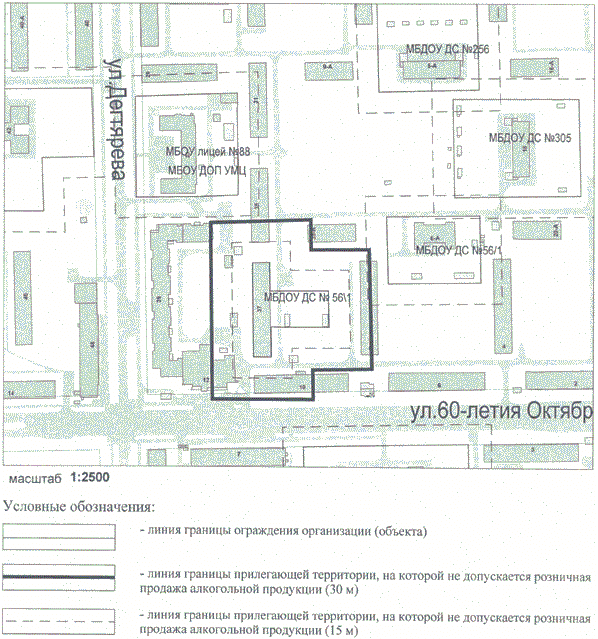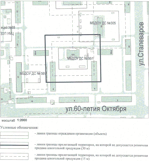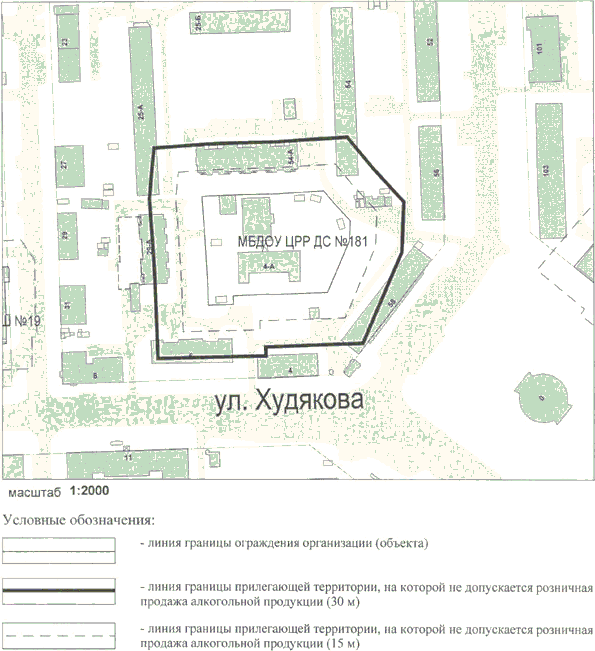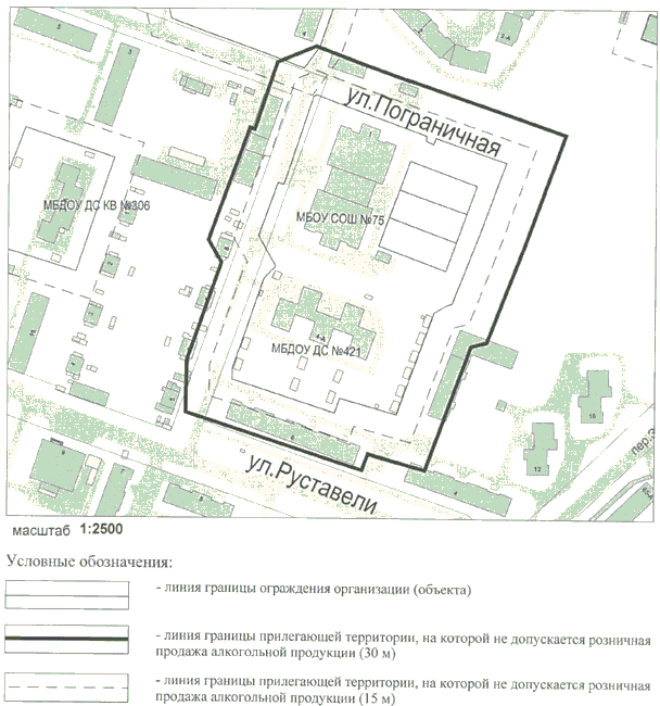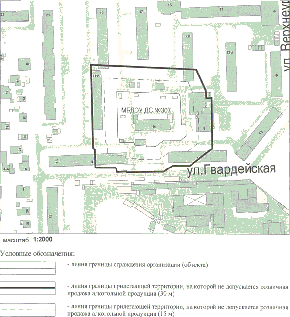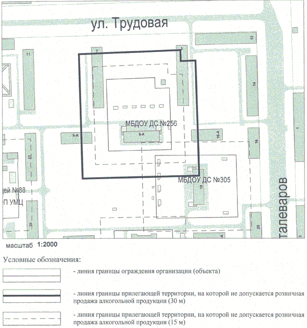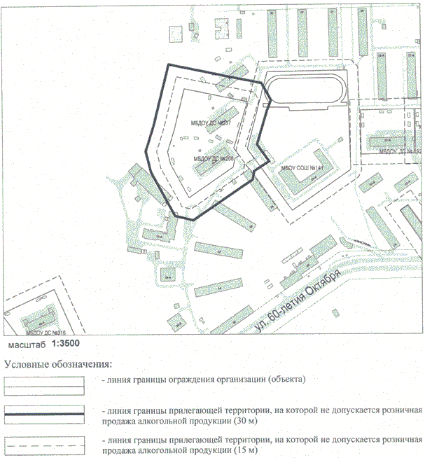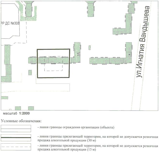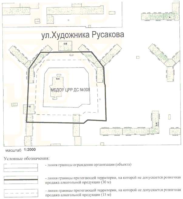 СХЕМА ГРАНИЦ ТЕРРИТОРИИ, НА КОТОРОЙ НЕ ДОПУСКАЕТСЯ РОЗНИЧНАЯ ПРОДАЖА АЛКОГОЛЬНОЙ ПРОДУКЦИИ, ПРИЛЕГАЮЩЕЙ К МБДОУ ЦРР ДС N 308 ПО АДРЕСУ: Г. ЧЕЛЯБИНСК, КАЛИНИНСКИЙ РАЙОН, УЛ. ХУДОЖНИКА РУСАКОВА, 5-А.
