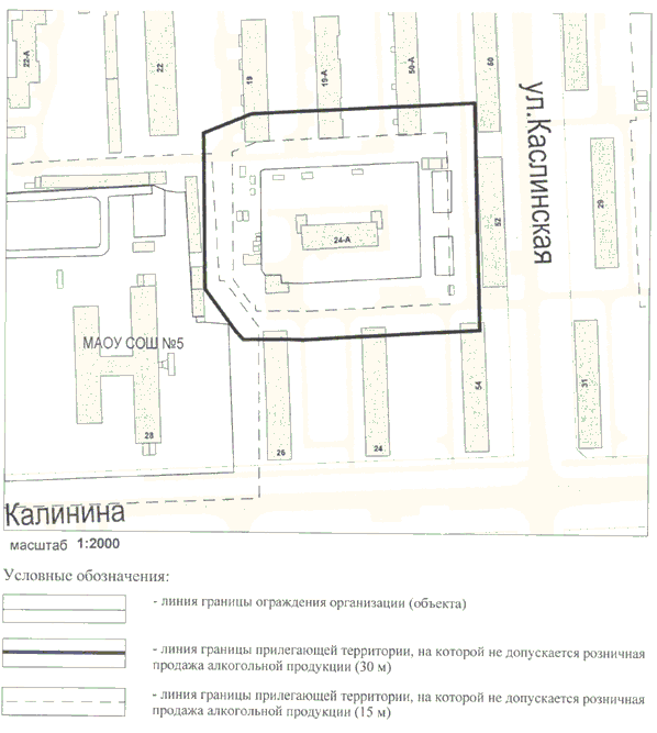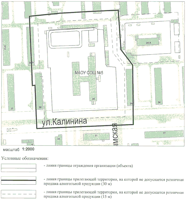 СХЕМА ГРАНИЦ ТЕРРИТОРИИ, НА КОТОРОЙ НЕ ДОПУСКАЕТСЯ РОЗНИЧНАЯ ПРОДАЖА АЛКОГОЛЬНОЙ ПРОДУКЦИИ, ПРИЛЕГАЮЩЕЙ К МАОУ СОШ N 5, ПО АДРЕСУ: Г. ЧЕЛЯБИНСК, КАЛИНИНСКИЙ РАЙОН, УЛ. КАЛИНИНА, 28.