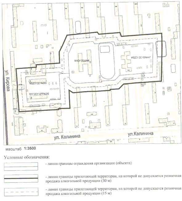 СХЕМА ГРАНИЦ ТЕРРИТОРИИ, НА КОТОРОЙ НЕ ДОПУСКАЕТСЯ РОЗНИЧНАЯ ПРОДАЖА АЛКОГОЛЬНОЙ ПРОДУКЦИИ, ПРИЛЕГАЮЩЕЙ К МБДОУ ДС N 263 ПО АДРЕСУ: Г. ЧЕЛЯБИНСК, КАЛИНИНСКИЙ РАЙОН, УЛ. КИРОВА, 5-А, 5-Б, 3-А, УЛ. КАЛИНИНА 2-А.