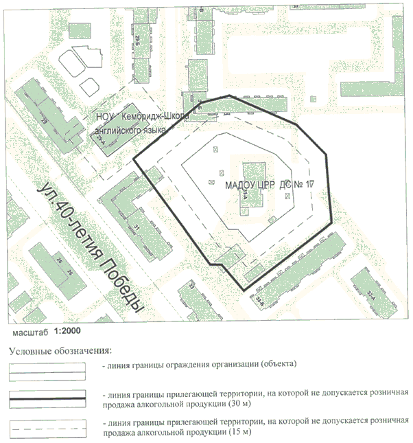 СХЕМА ГРАНИЦ ТЕРРИТОРИИ, НА КОТОРОЙ НЕ ДОПУСКАЕТСЯ РОЗНИЧНАЯ ПРОДАЖА АЛКОГОЛЬНОЙ ПРОДУКЦИИ, ПРИЛЕГАЮЩЕЙ К МБДОУ ЦРР ДС N 17, ПО АДРЕСУ: Г. ЧЕЛЯБИНСК, КАЛИНИНСКИЙ РАЙОН, УЛ. 40-ЛЕТИЯ ПОБЕДЫ, 31-А.