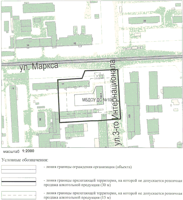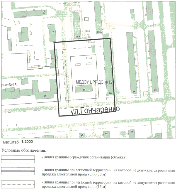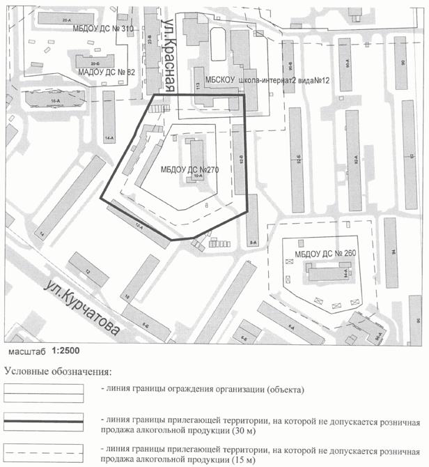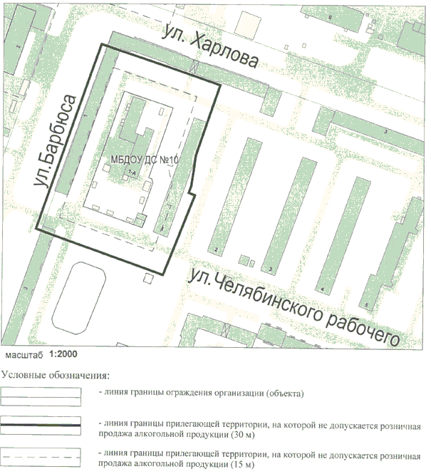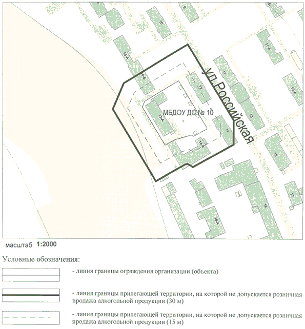 СХЕМА ГРАНИЦ ТЕРРИТОРИИ, НА КОТОРОЙ НЕ ДОПУСКАЕТСЯ РОЗНИЧНАЯ ПРОДАЖА АЛКОГОЛЬНОЙ ПРОДУКЦИИ, ПРИЛЕГАЮЩЕЙ К МБДОУ ДС N 10, ПО АДРЕСУ: Г. ЧЕЛЯБИНСК, КАЛИНИНСКИЙ РАЙОН, УЛ. РОССИЙСКАЯ, 12-А.
