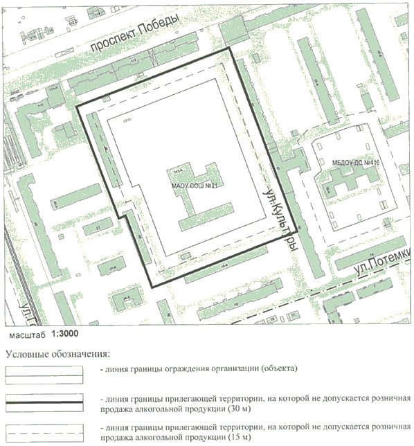 СХЕМА ГРАНИЦ ТЕРРИТОРИИ, НА КОТОРОЙ НЕ ДОПУСКАЕТСЯ РОЗНИЧНАЯ ПРОДАЖА АЛКОГОЛЬНОЙ ПРОДУКЦИИ, ПРИЛЕГАЮЩЕЙ К МАОУ СОШ N 21 ПО АДРЕСУ: Г. ЧЕЛЯБИНСК, КАЛИНИНСКИЙ РАЙОН, УЛ. ПРОСПЕКТ ПОБЕДЫ, 113-А.