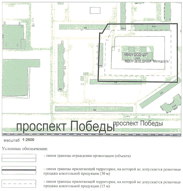 СХЕМА ГРАНИЦ ТЕРРИТОРИИ, НА КОТОРОЙ НЕ ДОПУСКАЕТСЯ РОЗНИЧНАЯ ПРОДАЖА АЛКОГОЛЬНОЙ ПРОДУКЦИИ, ПРИЛЕГАЮЩЕЙ К МБУДО "ЦРТДИЮ "ПОБЕДА" Г. ЧЕЛЯБИНСКА" ПО АДРЕСУ: Г. ЧЕЛЯБИНСК, КАЛИНИНСКИЙ РАЙОН, УЛ. ГЕРОЕВ ТАНКОГРАДА, 23.