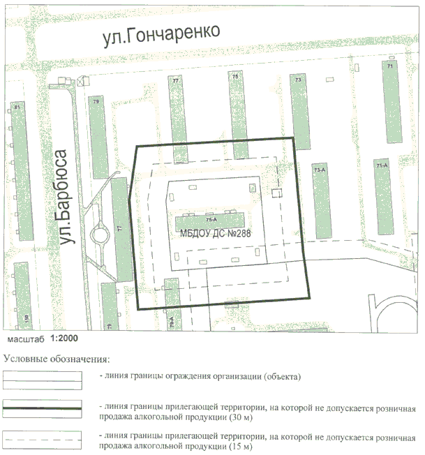 СХЕМА ГРАНИЦ ТЕРРИТОРИИ, НА КОТОРОЙ НЕ ДОПУСКАЕТСЯ РОЗНИЧНАЯ ПРОДАЖА АЛКОГОЛЬНОЙ ПРОДУКЦИИ, ПРИЛЕГАЮЩЕЙ К МБУДО "ДЮЦ" ПО АДРЕСУ: Г. ЧЕЛЯБИНСК, ЛЕНИНСКИЙ РАЙОН, УЛ. ГОНЧАРЕНКО, 73-А.