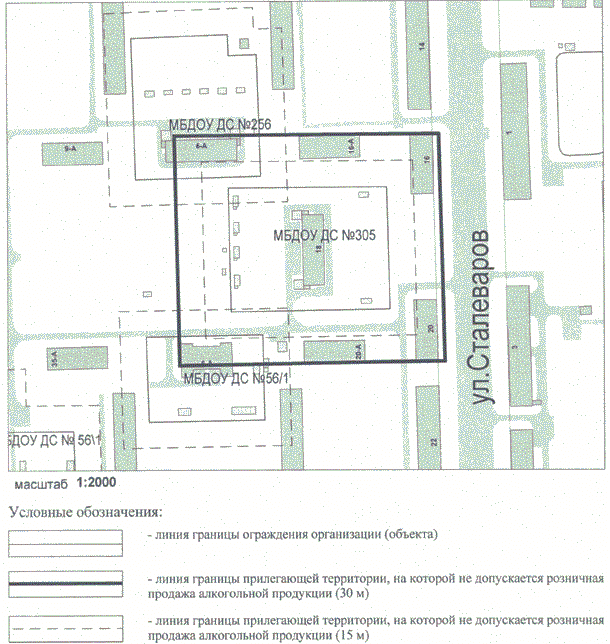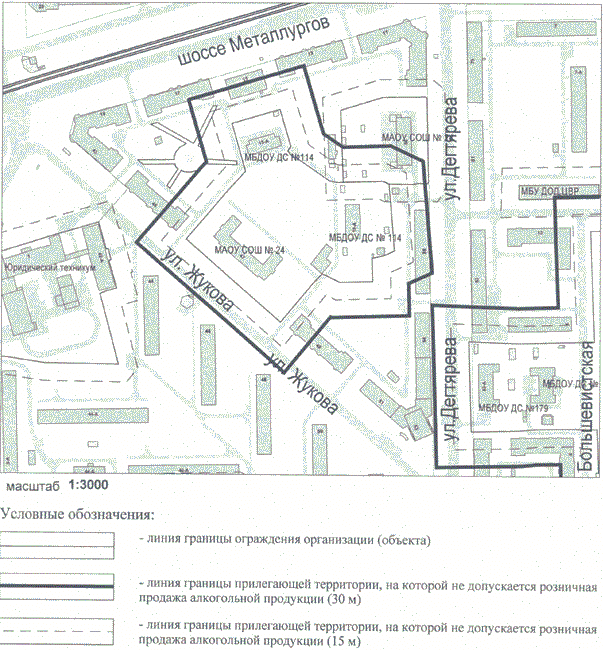 СХЕМА ГРАНИЦ ТЕРРИТОРИИ, НА КОТОРОЙ НЕ ДОПУСКАЕТСЯ РОЗНИЧНАЯ ПРОДАЖА АЛКОГОЛЬНОЙ ПРОДУКЦИИ, ПРИЛЕГАЮЩЕЙ К МБДОУ ЦРР ДС N 308 ПО АДРЕСУ: Г. ЧЕЛЯБИНСК, КАЛИНИНСКИЙ РАЙОН, УЛ. КАЛИНИНА, 24-А.