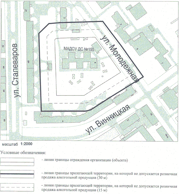 СХЕМА ГРАНИЦ ТЕРРИТОРИИ, НА КОТОРОЙ НЕ ДОПУСКАЕТСЯ РОЗНИЧНАЯ ПРОДАЖА АЛКОГОЛЬНОЙ ПРОДУКЦИИ, ПРИЛЕГАЮЩЕЙ К ЧОУ ДО "ИНЛИНГВА" ПО АДРЕСУ: Г. ЧЕЛЯБИНСК, СОВЕТСКИЙ РАЙОН, УЛ. СВОБОДЫ, 155-В.