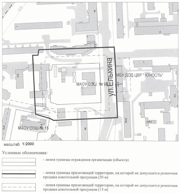 СХЕМА ГРАНИЦ ТЕРРИТОРИИ, НА КОТОРОЙ НЕ ДОПУСКАЕТСЯ РОЗНИЧНАЯ ПРОДАЖА АЛКОГОЛЬНОЙ ПРОДУКЦИИ, ПРИЛЕГАЮЩЕЙ К МБУДО "ЦВР "ЮНОСТЬ" Г. ЧЕЛЯБИНСКА" ПО АДРЕСУ: Г. ЧЕЛЯБИНСК, СОВЕТСКИЙ РАЙОН, УЛ. ЕЛЬКИНА, 63-А.