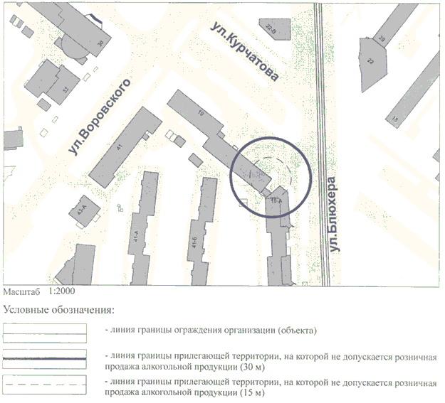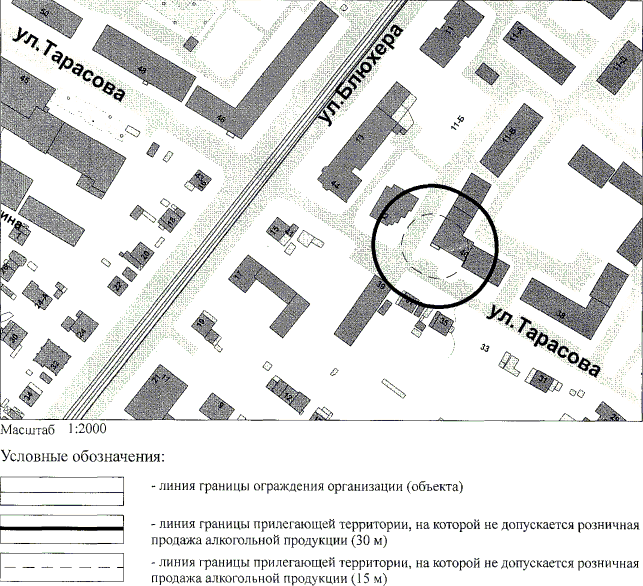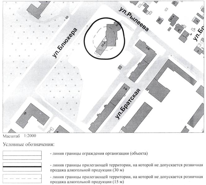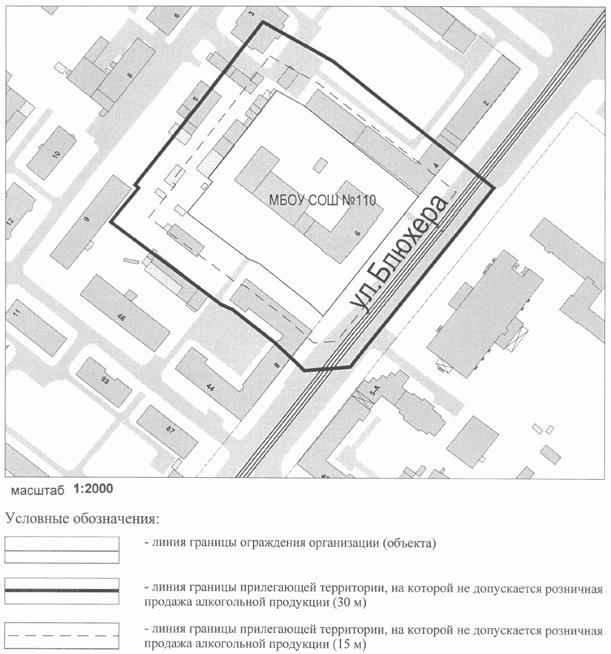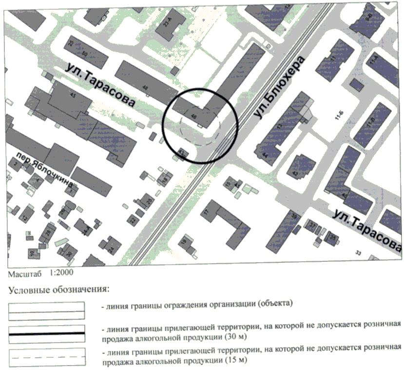СХЕМА ГРАНИЦ ТЕРРИТОРИИ, НА КОТОРОЙ НЕ ДОПУСКАЕТСЯ РОЗНИЧНАЯ ПРОДАЖА АЛКОГОЛЬНОЙ ПРОДУКЦИИ, ПРИЛЕГАЮЩЕЙ К ООО "ПМТ-ЛАБОРАТОРИЯ" ПО АДРЕСУ: Г. ЧЕЛЯБИНСК, СОВЕТСКИЙ РАЙОН, УЛ. БЛЮХЕРА, 53.