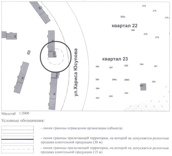 СХЕМА ГРАНИЦ ТЕРРИТОРИИ, НА КОТОРОЙ НЕ ДОПУСКАЕТСЯ РОЗНИЧНАЯ ПРОДАЖА АЛКОГОЛЬНОЙ ПРОДУКЦИИ, ПРИЛЕГАЮЩЕЙ К ООО "КАРМЕЛЬ ПЛЮС" ПО АДРЕСУ: Г. ЧЕЛЯБИНСК, ЦЕНТРАЛЬНЫЙ РАЙОН, УЛ. ПУШКИНА, 27-А, НЕЖИЛОЕ ПОМЕЩЕНИЕ N 14.