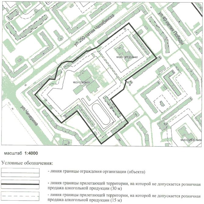 СХЕМА ГРАНИЦ ТЕРРИТОРИИ, НА КОТОРОЙ НЕ ДОПУСКАЕТСЯ РОЗНИЧНАЯ ПРОДАЖА АЛКОГОЛЬНОЙ ПРОДУКЦИИ, ПРИЛЕГАЮЩЕЙ К МБДОУ ДС N 9, МБДОУ ДС N 458, МАОУ СОШ N 36, МБДОУ ДС N 108, МБДОУ ДС 219 АВТОШКОЛА ПО АДРЕСУ: Г. ЧЕЛЯБИНСК, КАЛИНИНСКИЙ РАЙОН, УЛ. 250-ЛЕТИЯ ЧЕЛЯБИНСКА, 14А, 16Б, УЛ. 40-ЛЕТИЯ ПОБЕДЫ, 24А, УЛ. ЧИЧЕРИНА, 21А, 23А.