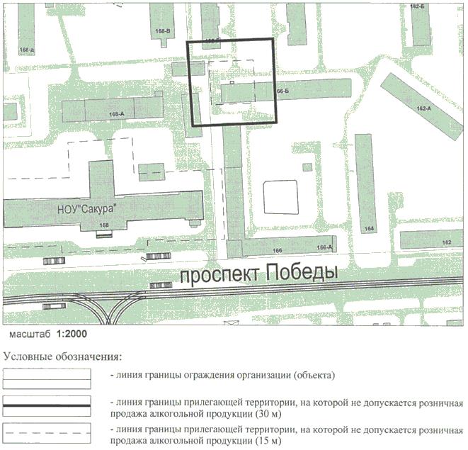 СХЕМА ГРАНИЦ ТЕРРИТОРИИ, НА КОТОРОЙ НЕ ДОПУСКАЕТСЯ РОЗНИЧНАЯ ПРОДАЖА АЛКОГОЛЬНОЙ ПРОДУКЦИИ, ПРИЛЕГАЮЩЕЙ К ЧОУ СШ "ИППОН" ПО АДРЕСУ: Г. ЧЕЛЯБИНСК, КАЛИНИНСКИЙ РАЙОН, ПР. ПОБЕДЫ, 166.