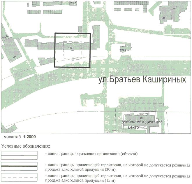 СХЕМА ГРАНИЦ ТЕРРИТОРИИ, НА КОТОРОЙ НЕ ДОПУСКАЕТСЯ РОЗНИЧНАЯ ПРОДАЖА АЛКОГОЛЬНОЙ ПРОДУКЦИИ, ПРИЛЕГАЮЩЕЙ К ГБНОУ "ОБРАЗОВАТЕЛЬНЫЙ КОМПЛЕКС "СМЕНА" ПО АДРЕСУ: Г. ЧЕЛЯБИНСК, ТРАКТОРОЗАВОДСКИЙ РАЙОН, УЛ. КУЛЬТУРЫ, 102.