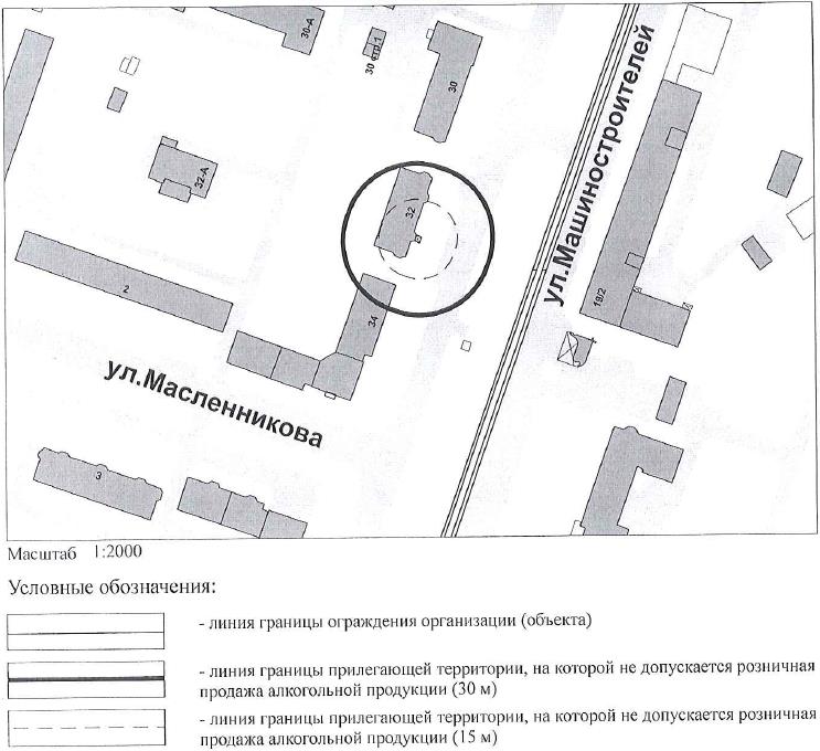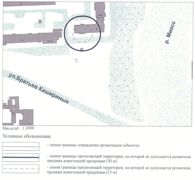 СХЕМА ГРАНИЦ ТЕРРИТОРИИ, НА КОТОРОЙ НЕ ДОПУСКАЕТСЯ РОЗНИЧНАЯ ПРОДАЖА АЛКОГОЛЬНОЙ ПРОДУКЦИИ, ПРИЛЕГАЮЩЕЙ К МБУДО "ДЮЦ" ПО АДРЕСУ: Г. ЧЕЛЯБИНСК, ЛЕНИНСКИЙ РАЙОН, УЛ. МАСЛЕННИКОВА, 8-А.