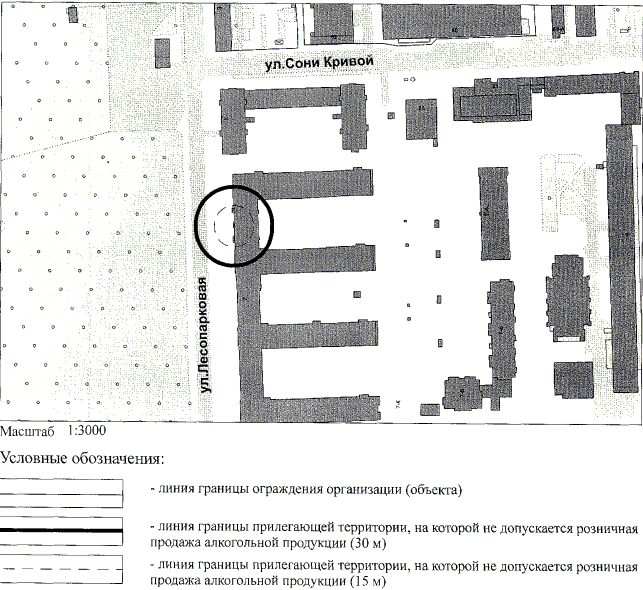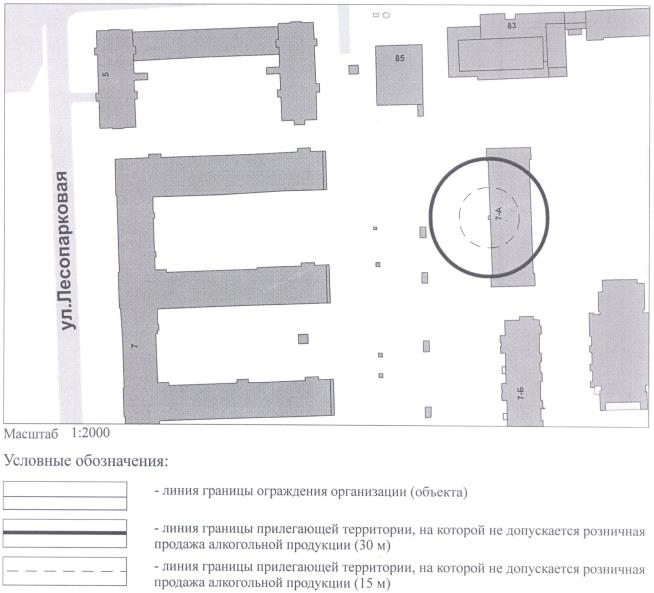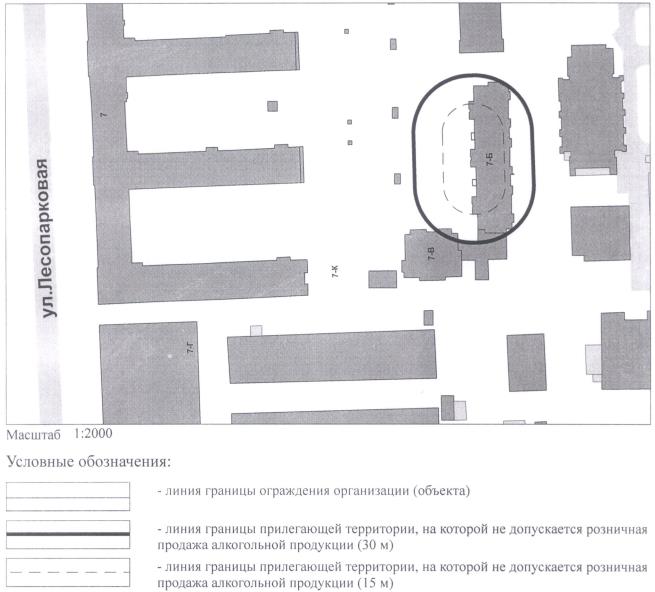 СХЕМА ГРАНИЦ ТЕРРИТОРИИ, НА КОТОРОЙ НЕ ДОПУСКАЕТСЯ РОЗНИЧНАЯ ПРОДАЖА АЛКОГОЛЬНОЙ ПРОДУКЦИИ, ПРИЛЕГАЮЩЕЙ К ООО "БЛИК", ИП СЕМИКОПОВА ТАМАРА ИВАНОВНА, ИП КРЕМСОВА ЕЛЕНА БОРИСОВНА ПО АДРЕСУ: Г. ЧЕЛЯБИНСК, ЦЕНТРАЛЬНЫЙ РАЙОН, УЛ. ЛЕСОПАРКОВАЯ, 9-А, ПОМ. 125, НЕЖИЛЫЕ ПОМЕЩЕНИЯ N 147, N 148, КАБИНЕТ N 179, 1-Й ЭТАЖ.