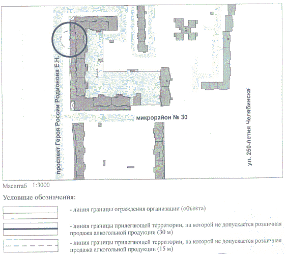 СХЕМА ГРАНИЦ ТЕРРИТОРИИ, НА КОТОРОЙ НЕ ДОПУСКАЕТСЯ РОЗНИЧНАЯ ПРОДАЖА АЛКОГОЛЬНОЙ ПРОДУКЦИИ, ПРИЛЕГАЮЩЕЙ К МАУДО "ДХШИ" Г. ЧЕЛЯБИНСКА ПО АДРЕСУ: Г. ЧЕЛЯБИНСК, КАЛИНИНСКИЙ РАЙОН, СВЕРДЛОВСКИЙ ПР., 30.