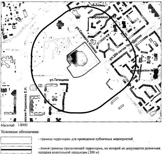 СХЕМА ГРАНИЦ ТЕРРИТОРИИ, НА КОТОРОЙ НЕ ДОПУСКАЕТСЯ РОЗНИЧНАЯ ПРОДАЖА АЛКОГОЛЬНОЙ ПРОДУКЦИИ, ПРИЛЕГАЮЩЕЙ К МБУДО "ЦВР "ЮНОСТЬ" Г. ЧЕЛЯБИНСКА" ПО АДРЕСУ: Г. ЧЕЛЯБИНСК, СОВЕТСКИЙ РАЙОН, УЛ. ЧЕЛЯБИНСКАЯ, 20-Б.