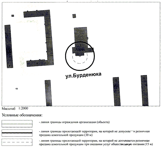 СХЕМА ГРАНИЦ ТЕРРИТОРИИ, НА КОТОРОЙ НЕ ДОПУСКАЕТСЯ РОЗНИЧНАЯ ПРОДАЖА АЛКОГОЛЬНОЙ ПРОДУКЦИИ, ПРИЛЕГАЮЩЕЙ К МАУДО "ДШИ N 13" Г. ЧЕЛЯБИНСКА ПО АДРЕСУ: Г. ЧЕЛЯБИНСК, КУРЧАТОВСКИЙ РАЙОН, УЛ. БУРДЕНЮКА, КЛУБ ЧВВАУШ (ВИ).