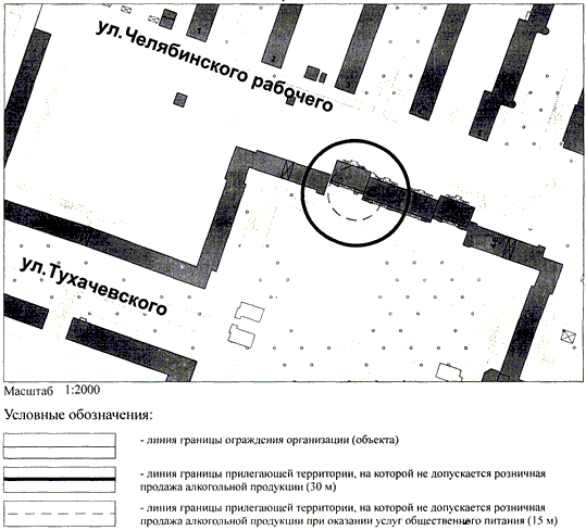 СХЕМА ГРАНИЦ ТЕРРИТОРИИ, НА КОТОРОЙ НЕ ДОПУСКАЕТСЯ РОЗНИЧНАЯ ПРОДАЖА АЛКОГОЛЬНОЙ ПРОДУКЦИИ, ПРИЛЕГАЮЩЕЙ К ЧОУ "[БИГ БЕН]" ПО АДРЕСУ: Г. ЧЕЛЯБИНСК, ЛЕНИНСКИЙ РАЙОН, УЛ. ЧЕЛЯБИНСКОГО РАБОЧЕГО, 7, ОФИС 2.