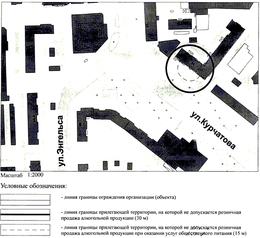 СХЕМА ГРАНИЦ ТЕРРИТОРИИ, НА КОТОРОЙ НЕ ДОПУСКАЕТСЯ РОЗНИЧНАЯ ПРОДАЖА АЛКОГОЛЬНОЙ ПРОДУКЦИИ, ПРИЛЕГАЮЩЕЙ К ЧОУ "[БИГ БЕН]" ПО АДРЕСУ: Г. ЧЕЛЯБИНСК, ЦЕНТРАЛЬНЫЙ РАЙОН, УЛ. ЭНГЕЛЬСА, 95, ОФИС 50, ПОМЕЩЕНИЯ N 4, N 5.