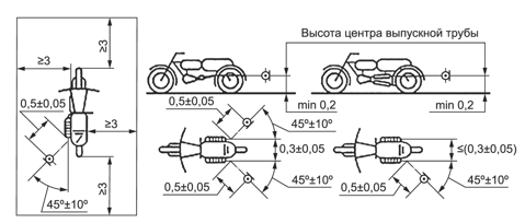 Рисунок К.2. Расположение микрофона для измерения шума выпуска отработавших газов КТС категорий L. (в ред. Изменения N 1, утв. протоколом Росстандарта от 31.01.2025 N 181-П)
