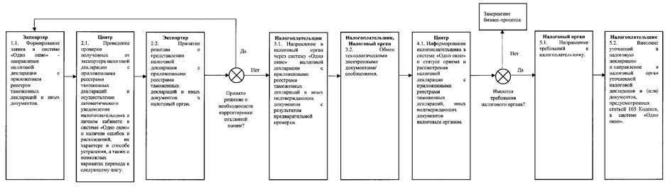 ОПИСАНИЕ ЦЕЛЕВОГО БИЗНЕС-ПРОЦЕССА ПРОВЕРКИ ОБОСНОВАННОСТИ ПРИМЕНЕНИЯ НАЛОГОВОЙ СТАВКИ 0 ПРОЦЕНТОВ ПО НАЛОГУ НА ДОБАВЛЕННУЮ СТОИМОСТЬ В ОТНОШЕНИИ ОПЕРАЦИЙ ПО РЕАЛИЗАЦИИ ТОВАРОВ, ВЫВЕЗЕННЫХ В ТАМОЖЕННОЙ ПРОЦЕДУРЕ ЭКСПОРТА, В ЧАСТИ ФОРМИРОВАНИЯ ПАКЕТА ДОКУМЕНТОВ (ИНФОРМАЦИИ, СВЕДЕНИЙ) ДЛЯ ПОДАЧИ В НАЛОГОВЫЙ ОРГАН, ПРОВЕДЕНИЯ ПРЕДВАРИТЕЛЬНОЙ ПРОВЕРКИ ПРАВИЛЬНОСТИ ЗАПОЛНЕНИЯ НАЛОГОВОЙ ДЕКЛАРАЦИИ (ФОРМАТНО-ЛОГИЧЕСКИЙ КОНТРОЛЬ), ПОЛУЧЕНИЯ ИНФОРМАЦИИ О РЕЗУЛЬТАТАХ ПРЕДВАРИТЕЛЬНОЙ ПРОВЕРКИ, ПОДАЧИ ПАКЕТА ДОКУМЕНТОВ (ИНФОРМАЦИИ, СВЕДЕНИЙ) В НАЛОГОВЫЙ ОРГАН ПО ТЕЛЕКОММУНИКАЦИОННЫМ КАНАЛАМ СВЯЗИ ЧЕРЕЗ ОПЕРАТОРА ЭЛЕКТРОННОГО ДОКУМЕНТООБОРОТА, ОБМЕНА ИНФОРМАЦИЕЙ (ДОКУМЕНТАМИ) В РАМКАХ КАМЕРАЛЬНОЙ ПРОВЕРКИ С ИСПОЛЬЗОВАНИЕМ ТЕЛЕКОММУНИКАЦИОННЫХ КАНАЛОВ СВЯЗИ ОПЕРАТОРА ЭЛЕКТРОННОГО ДОКУМЕНТООБОРОТА