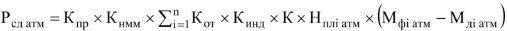 платы за выбросы (в отношении объема сожженного и (или) рассеянного попутного нефтяного газа, превышающего объем, соответствующий предельно допустимому значению показателя сжигания), рассчитанной в отношении объема сожженного и (или) рассеянного попутного нефтяного газа, превышающего объем, соответствующий предельно допустимому значению показателя сжигания (Pсд атм), которая определяется по формуле: