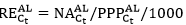 - реальный объем расходов по категориям и ВВП в целом страны C по ППС в текущих ценах за год t, млрд долларов США;